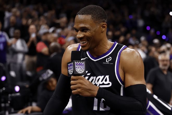 作为NBA75大球星,MVP得主,历史三双王,得分王、助攻王也都拿过,威少的个人荣誉已经基本拉满了,没有什么遗憾了,唯一的遗憾,就是没有总冠军。但说实话,按照威少的打法,尤其是生涯末期的威少,只能是开心第一,其他随缘了。上赛季在掘金是最好的冲冠机会,可惜最终未能实现。去年休赛季威少拒绝执行球员选项,导致本赛季开赛前一度找不到工作,无人问津,非常尴尬,但最终国王队接纳了他,并且收到了回报。