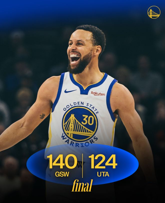 露牙大笑+客场跳舞!37岁库里28分钟27+4三分 里程碑夜兴奋无比